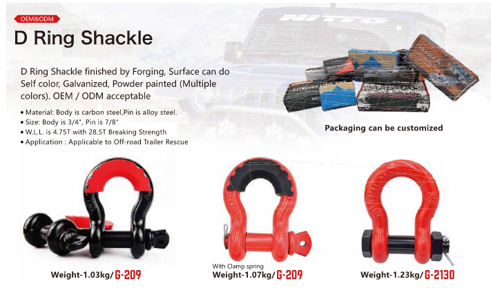 This heavy-duty Forged D Ring Shackle is built for demanding off-road, trailer, and rescue operations. With a Working Load Limit of 4.75 tons and a breaking strength of 28.5 tons, it offers reliable strength and safety. The body is made from carbon steel and the pin from alloy steel, with surface finish options including self-color, galvanized, or powder coating. Custom packaging and OEM/ODM services are available.