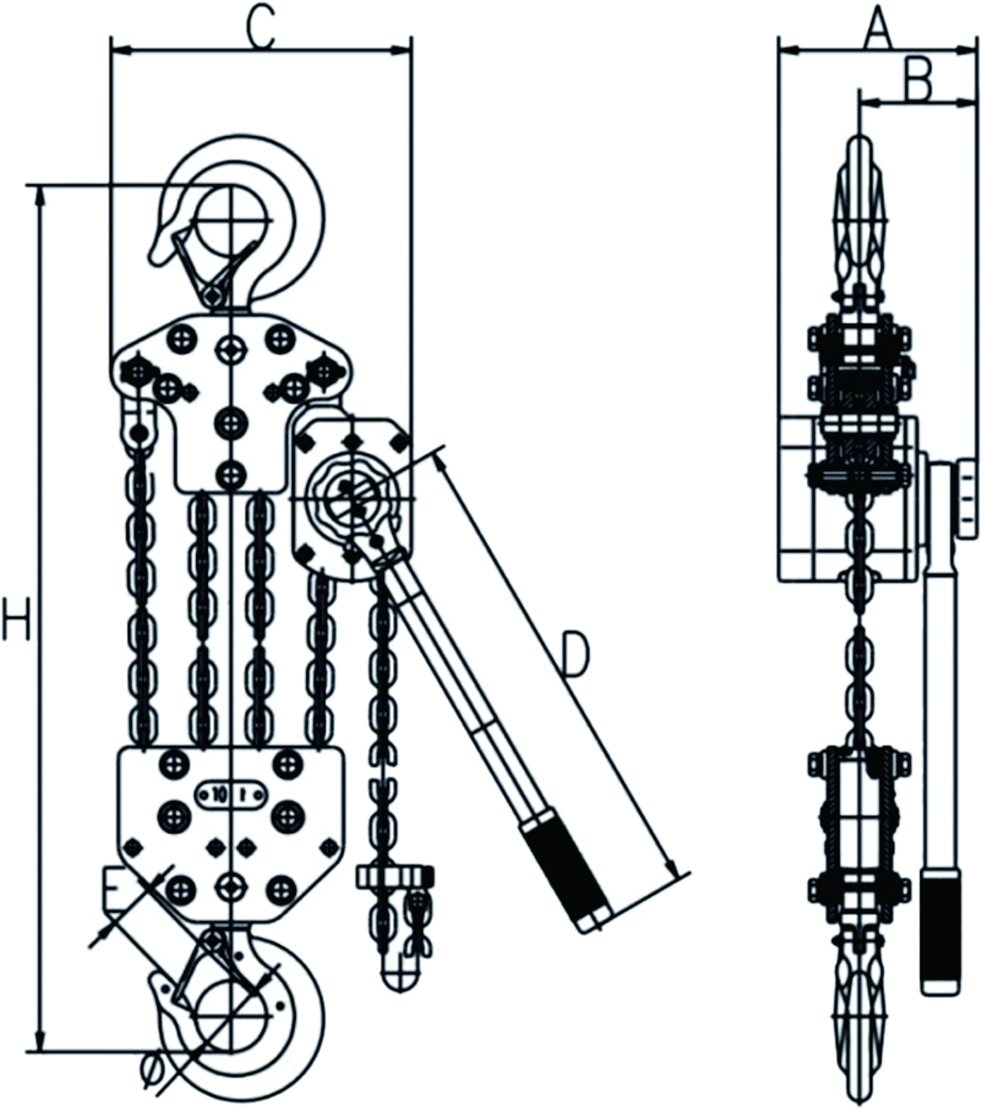 JTAL Lever Hoist is a professional-grade lifting tool designed specifically for powerline and overhead line construction. The hoist is built with a sealed high-strength aluminum housing, making it lightweight, durable, and easy to carry. It offers free chain adjustment under no-load conditions and is equipped with a split handle that bends as an overload indicator, ensuring safer operation in the field.